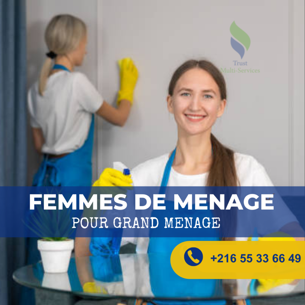 Nous mettons à votre disposition des femmes de ménage expérimentées pour le nettoyage de votre appartement, villa, bureau ou local commercial.
