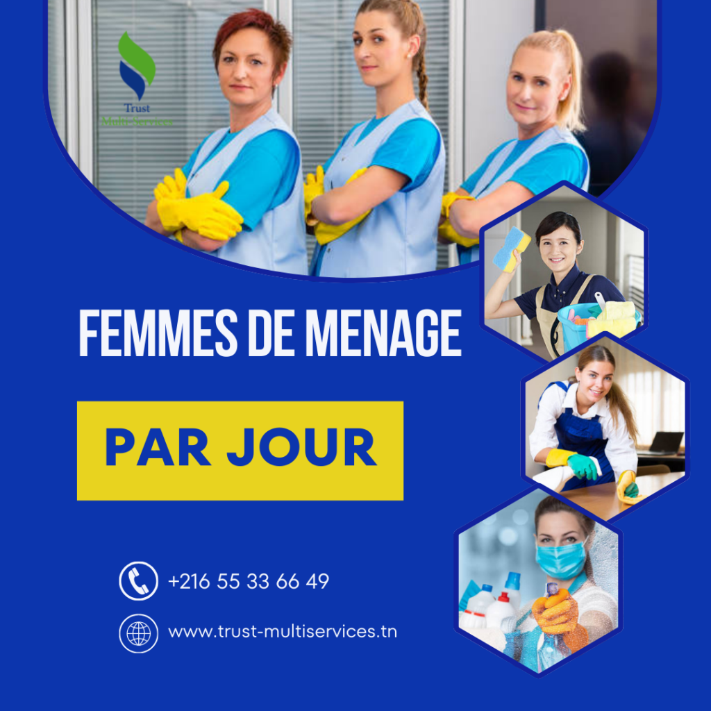Nous mettons à votre disposition des femmes de ménage expérimentées pour le nettoyage de votre appartement, villa, bureau ou local commercial.
