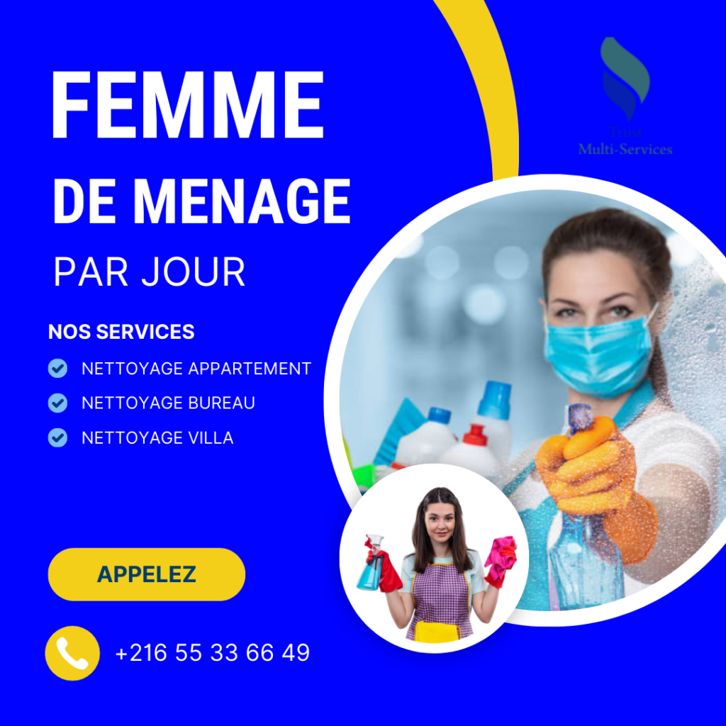 Nous mettons à votre disposition des femmes de ménage expérimentées pour le nettoyage de votre appartement, villa, bureau ou local commercial.