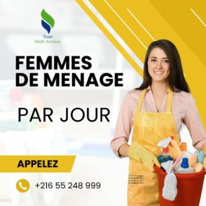 Vous cherchez une femme de ménage fiable et professionnelle pour entretenir votre maison ou votre bureau à Tunis ? Ne cherchez plus !